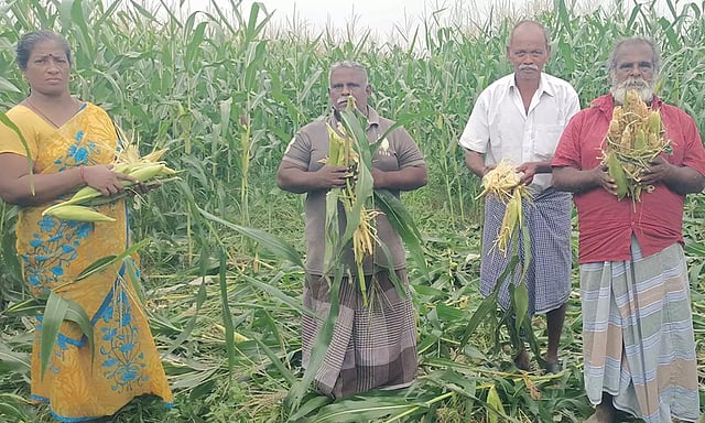 இந்த மக்காச்சோள பயிர்கள் தற்போது அறுவடைக்கு தயாராகும் நிலையில் கதிர்கள் விளைந்துள்ளது.
