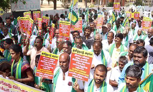 இந்தநிலையில் இன்று கோரிக்கைகளை வலியுறுத்தி தமிழக விவசாயிகள் பாதுகாப்பு சங்கம் சார்பில் 100-க்கும் மேற்பட்ட விவசாயிகள் திருப்பூர் வித்யாலயம் பகுதியில் இருந்து கலெக்டர் அலுவலகம் நோக்கி பேரணியாக சென்றனர். பின்னர் கலெக்டர் அலுவலகம் முன்பு கோரிக்கைகளை வலியுறுத்தி ஆர்ப்பாட்டத்தில் ஈடுபட்டனர்.