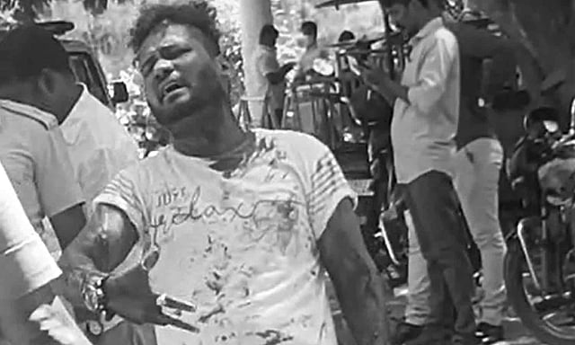 அவர் திடீரென தனது உடலில் பிளேடால் வெட்டி கூச்சல் போட்டார். கழுத்து, கை உள்ளிட்ட இடங்களில் சரமாரியாக பிளேடால் வெட்டியதில் அவருக்கு காயம் ஏற்பட்டு ரத்தம் கொட்டியது. இதனால் நுழைவு வாயில் பகுதியில் பரபரப்பு ஏற்பட்டது.