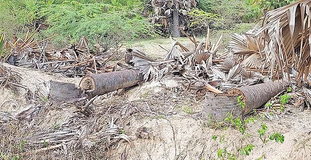 உடன்குடியில் இருந்து ஜே.ஜே.நகர் வழியாக திருச்செந்தூர் செல்லும் மெயின் ரோட்டின் கரையில் பல இடங்களில் சின்ன சின்ன பனை மரங்கள் வெட்டப்பட்டு கிடக்கின்றன. இவ்வாறு வெட்டப்படுவதை தடுக்க வேண்டும் என்று சமூக ஆர்வலர்கள் வலியுறுத்தி வருகின்றனர். தமிழக அரசுபனை மரங்களை அதிக அளவில் வளர்க்க வேண்டும், விவசாயத்தை விருத்தி செய்ய வேண்டும், பனைமரம் வளர்ப்பதால் 100 வகையில் மக்களுக்கு பயன்தரும் என்பதை விளக்கி பனைமரங்களை வளர்க்க விழிப்புணர்வு பிரசாரம் செய்து, பனைமரம் வளர்ப்பவர்களுக்கு பல்வேறு சலுகைகளை அறிவித்து வருகிறது. இந்த நிலையில் பனை மரங்களை ரோட்டு ஒரமாகவெட்டி போட்டிருப்பது மிகவும் வேதனையாக உள்ளது என்று பலர் கூறுகின்றனர்.சம்பந்தப்பட்ட அதிகாரிகள் பனை மரம் வெட்டுவதை தடுக்க வேண்டும் என்று கோரிக்கை வைத்துள்ளனர்.