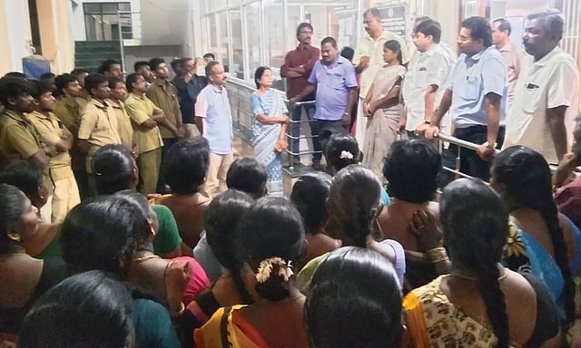 இந்த நிலையில் நேற்று மாலை முதல் இரவு சுமார் 9 மணி வரை தூய்மை பணியாளர்கள் தங்களுடன் நகராட்சி நிர்வாகம் சார்பில் பேச்சுவார்த்தை நடத்தப்பட வேண்டுமென முற்றுகையிட்டு போராட்டத்தில் ஈடுபட்டனர்.