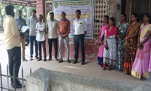 கள்ளக்குறிச்சி தாசில்தார் மனோஜ்முனியன் இடைக்கால பணிநீக்கத்தை உடனடியாக ரத்து செய்ய வலியுறுத்தி தமிழ்நாடு வருவாய்த்துறை அலுவலர் சங்கம் சார்பில் மாநிலம் முழுவதும் கண்டன ஆர்ப்பாட்டம் நடந்தது. பண்ருட்டி வருவாய் வட்டாட்சியர் அலுவலகம் முன்பு தமிழ்நாடு வருவாய்த்துறை அலுவலர் சங்க மாவட்ட துணை தலைவர் சிவக்குமார் தலைமையில், வருவாய் துறை அலுவலர்கள் ஆர்ப்பாட்டத்தில் ஈடுபட்டனர்.