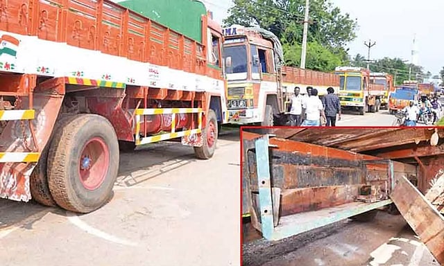 இந்த மில்லில் அரைப்பதற்காக லோடுடன் வருகை தந்த லாரிகள் சாலையோரம் நிறுத்தப்பட்டிருந்தன.