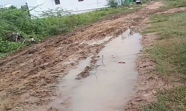 தற்போது பெய்த மழையின் காரணமாக சாலை முழுவதும் சேறும் சகதியுமாக மாறி உள்ளது. இதனால் பொதுமக்கள் மற்றும் பள்ளி மாணவர்கள் இந்த சாலை வழியாக செல்லும் போது கீழே விழும் அவல நிலை ஏற்பட்டுள்ளது.