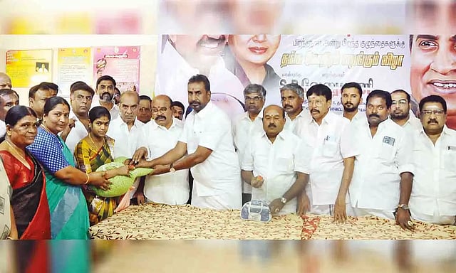 அ.தி.மு.க பொதுச்செயலாளர் எடப்பாடி கே.பழனிச்சாமியின் பிறந்த நாளையொட்டி திருப்பூர் அரசு மருத்துவமனையில் பிறந்த 18 குழந்தைகளுக்கு முன்னாள் எம்.எல்.ஏ., குணசேகரன் ஏற்பாட்டின் பேரில் தலா ஒரு கிராம் தங்க மோதிரம் வழங்கும் நிகழ்ச்சி நடைபெற்றது.