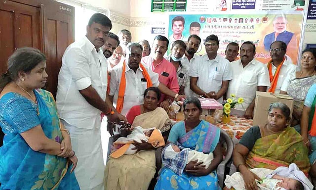 உடுமலையில் பிரதமர் நரேந்திர மோடி பிறந்த நாளை முன்னிட்டு உடுமலை நகர பா.ஜ.க. சார்பில் உடுமலை அரசு மருத்துவமனையில் பிறந்த 10 குழந்தைகளுக்கு தங்க மோதிரங்களை திருப்பூர் தெற்கு மாவட்ட பா.ஜ.க. தலைவர் மங்களம் ரவி வழங்கினார்.
