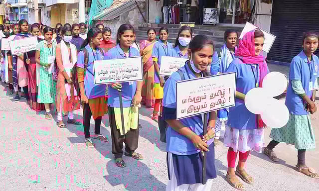 தமிழ் ஆட்சி மொழி சட்டம் இயற்றப்பட்ட நாளை நினைவு கூறும் வகையில் ஆட்சி மொழி சட்ட வார விழா கொண்டாடப்படுகிறது. தமிழில் பெயர் பலகை வைக்க அறிவுறுத்தப்பட்டும். அதே போல் கோப்புகள் பராமரிப்பிலும் முழுமையாக தமிழ் மொழியில் பராமரித்திட அறிவுறுத்தப்பட்டு வருகிறது .அந்த வகையில் திருப்பூர் நஞ்சப்பா ஆண்கள் மேல்.நிலைப்பள்ளியில் துவங்கிய.பேரணியை கலெக்டர் வினீத் கொடி அசைத்து.துவக்கி வைத்தார்.
