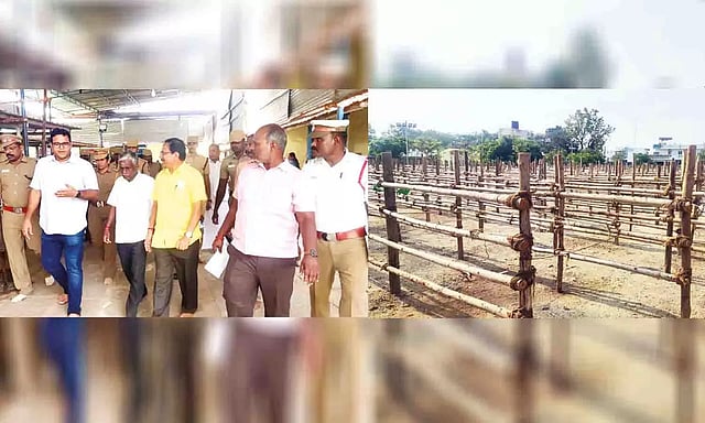 திருப்பூர் மாவட்டம் பெருமாநல்லூர் கொண்டத்து காளியம்மன் கோவில் குண்டம் இறங்கும் நிகழ்ச்சி மற்றும் தேர்த்திருவிழா வருகிற 4-ந் தேதி (செவ்வாய்க்கிழமை) நடைபெற உள்ளது. குண்டம் இறங்குவதற்கு அவினாசி, குன்னத்தூர், ஊத்துக்குளி, திருப்பூர் மாநகர பகுதிகளில் இருந்து ஆயிரக்கணக்கான பக்தர்கள் வருகை புரிய உள்ளனர். இவர்களுக்கு தேவையான பாதுகாப்பு ஏற்பாடுகளை கோவில் நிர்வாகம் தீவிரப்படுத்தி உள்ளது. குண்டம் இறங்கும் பக்தர்களுக்கு தடுப்பு கட்டைகள், 30-க்கும் மேற்பட்ட தற்காலிக கழிவறைகள், பக்தர்களுக்கு குடிநீர் வசதி ,வெளி மாவட்டங்களில் இருந்து வரும் பக்தர்களுக்கு, தங்கும் வசதி, சிறப்பு பஸ்கள் வசதியும் செய்யப்பட்டுள்ளது. இந்த நிலையில் நேற்று திருப்பூர் மாவட்ட போலீ்ஸ் சூப்பிரண்டு சசாங் சாய் கோவிலுக்கு வருகை வந்து பாதுகாப்பு ஏற்பாடுகளை ஆய்வு செய்தார். அவினாசி துணை போலீஸ் சூப்பிரண்டு பவுல்ராஜ் தலைமையில் 500-க்கும் மேற்பட்ட போலீசார் பாதுகாப்பு பணியில் ஈடுபட உள்ளனர்.