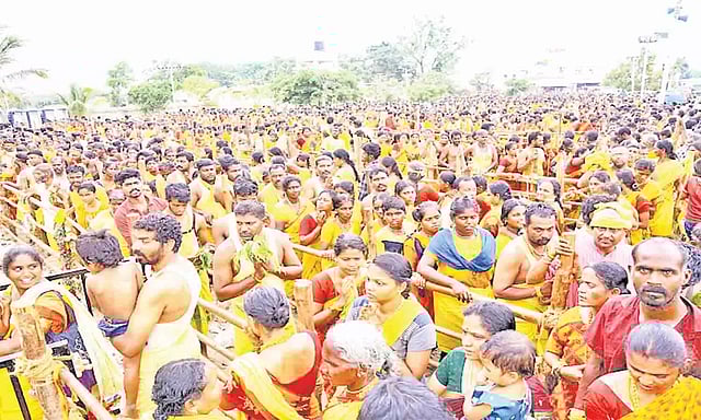 காைல 8மணிக்கு குண்டம் மூடுதல், சிறப்பு அக்னி அபிஷேகம், அபிஷேக ஆராதனை, அம்மன் பூத வாகன காட்சியுடன் புறப்பாடு, மண்டபக்கட்டளை நடந்தது. மதியம் 2மணிக்கு சிறப்பு அபிஷேக பூஜை, அம்மன் யாழி வாகனத்தில் திருத்தேர் எழுந்தருளல், மண்டப கட்டளை, மிராசுதாரர்களுக்கு மரியாதை செய்தல், தேங்காய் வழங்குதல் நடக்கிறது. மதியம் 3-30மணிக்கு திருத்தேர் வடம் பிடித்தல் நடக்கிறது. 7மணிக்கு அம்மன் கலைக்குழு மற்றும் ஸ்ரீசக்தி பண்பாட்டு மையம் வழங்கும் ஒயிலாட்டம் , வள்ளி கும்மியாட்டம் நடக்கிறது. 9-30 மணிக்கு கிராமிய இசை நிகழ்ச்சி நடக்கிறது.குண்டம் திருவிழா மற்றும் தேரோட்டத்தில் பங்கேற்பதற்காக திருப்பூர் மாவட்டம் மட்டுமின்றி பல்வேறு ஊர்களில் இருந்து ஏராளமான பக்தர்கள் குவிந்தனர். அவர்கள் கோவிலுக்கு வந்து செல்வதற்காக திருப்பூர் மத்திய பஸ் நிலையம் உள்ளிட்ட இடங்களில் இருந்து பெருமாநல்லூருக்கு சிறப்பு பஸ்கள் இயக்கப்பட்டன. மேலும் பக்தர்களுக்கு தேவையான குடிநீர், மொபைல் டாய்லெட் உள்ளிட்ட அடிப்படை வசதிகள் அனைத்தும் செய்யப்பட்டு இருந்தது. அவிநாசி டி.எஸ்.பி. பவுல்ராஜ் தலைைமயில் போலீசார் தீவிர பாதுகாப்பு பணியில் ஈடுபட்டனர். போக்குவரத்து நெரிசல் இல்லாமல் இருக்க பெருமாநல்லூரில் சில இடங்களில் போக்குவரத்தில் மாற்றம் செய்யப்பட்டு இருந்தது.