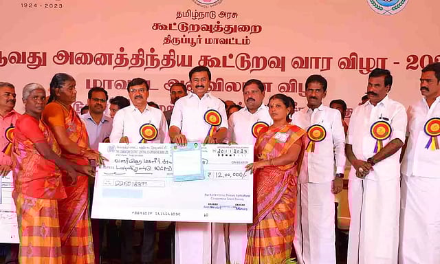 திருப்பூர் மாவட்டம் உடுமலை குடிமங்கலம் ஜெயராணி மஹாலில் 70-வது அனைத்திந்திய கூட்டுறவு வார விழா நடைபெற்றது. விழாவுக்கு தமிழக செய்தித்துறை அமைச்சர் மு.பெ.சாமிநாதன் தலைமை தாங்கினார். சண்முகசுந்தரம் எம்.பி., மாவட்ட வருவாய் அலுவலர் ஜெய்பீம் ஆகியோர் முன்னிலை வகித்தனர். விழாவில் 2728 பயனாளிகளுக்கு ரூ.31.45 கோடி மதிப்பீட்டில் கடனுதவிகளை அமைச்சர் மு.பெ.சாமிநாதன் வழங்கினார். பின்னர் அவர் கூறியதாவது:-