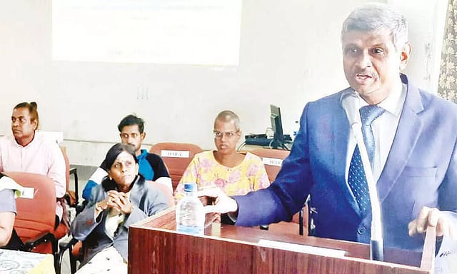 தமிழ்நாடு மாநில சட்டப்பணிகள் ஆணைக்குழுவின் உத்தரவின் பேரிலும், திருப்பூர் முதன்ைம மாவட்ட நீதிபதியும், மாவட்ட சட்டப்பணிகள் ஆணைக்குழு தலைவருமான ஸ்வர்ணம் ஜெ.நடராஜன் வழிகாட்டுதலின் பேரில், திருப்பூர் மாவட்ட சட்டப்பணிகள் ஆணைக்குழு, திருப்பூர் மாவட்ட நீதிமன்ற பாலின உணர்திறன்குழு மற்றும் நிறங்கள் அமைப்பு சார்பில் நீதிமன்ற பணியாளர்களுக்கு பாலின உணர்திறன் குறித்த விழிப்புணர்வு கருத்தரங்கு மாவட்ட கோர்ட்டு வளாகத்தில் நடைபெற்றது.நிகழ்ச்சியில் திருப்பூர் மாவட்ட கூடுதல் சார்பு நீதிபதி மேகலா மைதிலி வரவேற்றார். மாவட்ட விரைவு மகிளா நீதிபதி பாலு முன்னிலை வகித்து பேசுகையில், சமுதாயத்தில் ஆண், பெண் இருபாலருக்கும் வழங்கப்படும் சமத்துவம் மூன்றாம் பாலினத்தவருக்கும் நாம் வழங்க வேண்டும். அவர்களின் உணர்வுகளை புரிந்துகொள்வதோடு மட்டுமல்லாமல் அவர்களை சக மனிதர்கள் போல் நடத்த வேண்டும் என்றார்.மாவட்ட குடும்பநல நீதிபதியும், மாவட்ட நீதிமன்ற பாலின உணர்திறன்குழு தலைவருமான சுகந்தி மற்றும் கூடுதல் மகிளா நீதித்துறை நடுவர் கார்த்திகேயன் ஆகியோர் வாழ்த்துரை வழங்கினர். நிறங்கள் அமைப்பின் இணை நிறுவனர் சிவக்குமார், ஒருங்கிணைப்பாளர்கள் டெல்பினா, நவீன்குமார் ஆகியோர் 3-ம் பாலினத்தவர்களில் உள்ள வேறுபாடுகள் குறித்தும், அவர்கள் சமுதாயத்தில் எதிர்கொள்ளும் பிரச்சினைகள் உள்பட பல விவரங்கள் குறித்து விளக்கினர்.முடிவில் நீதித்துறை நடுவர் முருகேசன் நன்றி கூறினார். இதில் மோட்டார் வாகன விபத்து இழப்பீட்டு தீர்ப்பாய நீதிபதி ஸ்ரீகுமார், தலைமை குற்றவியல் நீதித்துறை நடுவர் புகழேந்தி, வழக்கறிஞர்கள், கோர்ட்டு பணியாளர்கள் உள்பட 180-க்கும் மேற்பட்ட பணியாளர்கள் கலந்து கொண்டனர்.