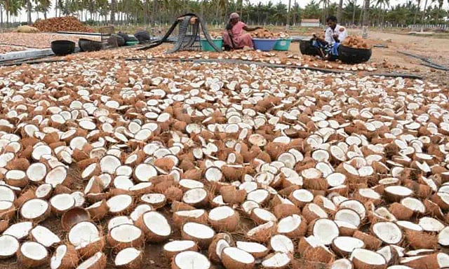 உடுமலை பகுதிகளில் தென்னை சாகுபடி பிரதானமாக உள்ள நிலையில் தேங்காய் மற்றும் கொப்பரைக்கு உரிய விலை கிடைக்காமல் விவசாயிகள் கடுமையாக பாதித்து வருகின்றனர்.இந்நிலையில் மத்திய, மாநில அரசுகள் சார்பில் தென்னை விவசாயிகளுக்கு பயன் அளிக்கும் வகையில் திருப்பூர் மாவட்டத்தில், உடுமலை, பெதப்பம்பட்டி, பொங்கலூர், காங்கயம் ஆகிய ஒழுங்கு முறை விற்பனைக்கூடங்களில் அரசு கொப்பரை கொள்முதல் மையங்கள் துவக்கப்பட்டது.