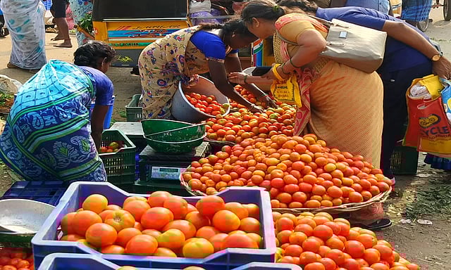 கடந்த வாரத்தில் தக்காளி கிலோ ரூ.12க்கு விற்கப்பட்டது. இந்நிலையில் கடந்த சில நாட்களாக பருவமழை அவ்வப்போது மாவட்டத்தில் பரவலாக பெய்தது. இதனால் தக்காளி வரத்து பாதிக்கப்பட்டது. செடியில் இருந்து கீழே விழுந்து அடிபட்டு காய்கள் வருகிறது. இதனால் வரத்து குறைந்து விலை உயர்ந்துள்ளது. திண்டுக்கல் மார்க்கெட்டில் பெட்டி ரூ.500 வரை ஏலம் போனது. சில்லறை கடைகளில் கிலோ ரூ. 25க்கு விற்கப்படுகிறது.