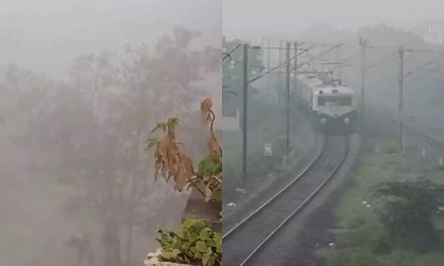 அவ்வாறு வந்த அனைத்து ரெயில்களிலும் வேகம் குறைக்கப்பட்டு இயக்கப்பட்டன. காலை 7 மணி வரை மேகத்துடன் பனிமூட்டமும் சேர்ந்து காணப்பட்டதால பயணிகளும் சிரமத்திற்கு ஆளானார்கள்.