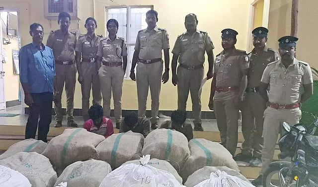 திருச்சி மாவட்டம் முசிறி அடுத்த காமாட்சிபட்டியில் குட்கா கடத்தப்படுவதாக போலீசாருக்கு கிடைத்த ரகசிய தகவலின் பெயரில் அங்கு சென்ற இன்ஸ்பெக்டர் செந்தில்குமார் மற்றும் உதவி இன்ஸ்பெக்டர்கள் கருணாநிதி, சக்தி விநாயகம், போலீசார் ராஜேஷ், சக்திவேல் ஆகியோர் காமாட்சி பட்டியில் உள்ள சேகர் என்பவரது வீட்டின் அருகே கண்டெய்னர் லாரியிலிருந்து, டாட்டா ஏசி வாகனத்தில் மூட்டைகள் மாற்றப்படுவது கண்டு சந்தேகம் அடைந்த போலீசார் உடனே அங்கு அதிரடி சோதனை நடத்தினர். அப்போது லட்சக்கணக்கான மதிப்பு உள்ள 30க்கும் மேற்பட்ட குட்கா பான் மசாலா மூட்டைகள் கொண்ட போதைப் பொருட்கள் மாற்றப்படுவதை போலீசார் கண்டறிந்தனர். இதனை அடுத்து விசாரணை செய்ததில் புனேவிலிருந்து தஞ்சாவூருக்கு பைப் லோடு ஏற்றி வந்த கன்டெய்னர் லாரி ஓட்டுநரான விராலிமலை தெற்கு தெருவை சேர்ந்த அழகர் மகன் வெள்ளைச்சாமி (வயது 23), கிளினர் அசுரப்பட்டி விராலிமலை அகர பட்டியை சேர்ந்த வேலு மகன் சீனிவாசன் ( வயது 25), ஆகிய இருவரும், நாமக்கல்லில் உள்ள லாரி உரிமையாளருக்கு தெரியாமல் குட்கா பொருட்கள் கடத்தி வந்தது விசாரணையில் தெரிய வந்தது. கடத்தி வந்த குட்கா பொருட்களை காமாட்சி பட்டி அருகே டாட்டா ஏஸ் வாகனம் ஓட்டுநர் சூரம்பட்டி செல்லிபாளையம் சோழன் மகன் திவாகர் ( வயது 23 )ஏற்ற சென்றுள்ளார். அங்கு மடக்கி பிடித்த முசிறி போலீசார் மூவரையும் கைது செய்து 781 கிலோ எடை கொண்ட குட்கா பொருட்களை பறிமுதல் செய்தும் கண்டெய்னர் வேன் மற்றும் டாடா ஏஸ் லோடு வேன் ஆகிய இரண்டு வாகனங்களையும் பறிமுதல் செய்தனர்.