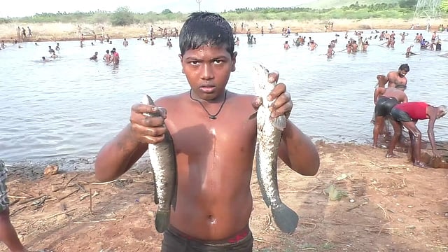வலை உள்ளிட்ட பல்வேறு மீன்பிடி சாதனங்களை வைத்து போட்டி போட்டுக் கொண்டு மீன்களை பிடிக்க தொடங்கினர். விரால், காட்லா என பல வகையான நாட்டு மீன்கள் பலருக்கும் சிக்கிய போதும் பெரிய அளவிலான மீன்கள் சிலருக்கு மட்டுமே கிடைத்தது.