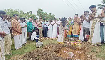 வல்லநாடு திருமூலநாதர் கோவிலில் ரூ.3 கோடி செலவில் திருப்பணிகளை கலெக்டர் செந்தில்ராஜ் தொடங்கி வைத்த காட்சி.