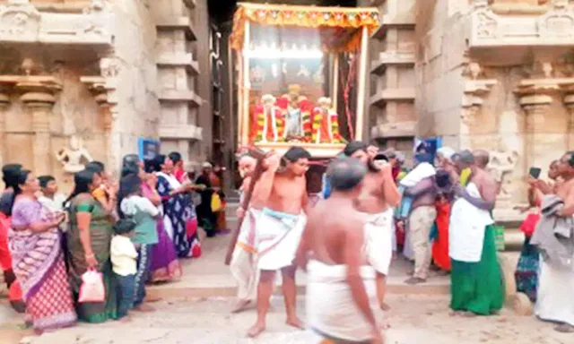 பெருமாளின் 108 திவ்விய தேசங்களில் 57-வது திவ்விய தேசமாக குறுங்குடி அழகிய நம்பிராயர் கோவில் இருந்து வருகிறது. நின்ற கோலத்தில் அருள்பாலிக்கும் பெருமாள் சுந்தரேச பரிபூர்ண பெருமாள் என்ற பெயரில் பக்தர்களுக்கு அருள் பாலித்து வருகிறார். இக்கோ விலில் கோடை உத்சவ விழா நடை பெற்று வந்தது. தாயாரு டன் உற்சவ பெருமாள் பட்டு பீதாம்பரம் இல்லாமல் மிக எளிய பருத்தி ஆடை வஸ்திரம் உடுத்தி தினமும் அருள் பாலித்து வந்தார். இந்நிலையில் நேற்று மாலை பெருமாள் தாயா ருடன் குலசேகர மண்ட பத்தில் எழுந்தருளினார். திருக்கு றுங்குடி ஜீயர் சுவாமிகள் பெருமாளுக்கு மங்களா சாசனம் செய்தார். அதன் பின்பு பல்வேறு பழ வகைகள், நெய்வேத்தி யங்கள் பெருமாளுக்கு சமர்பணம் செய்து அர்ச்சகரால் அலங்கார பூஜை நடை பெற்றது. அதன் பின்னர் தோளுக்கு இனியன் பல்லக்கில் பெருமாள் வீதி உலா வந்து பக்தர்களுக்கு அருள்பாலித்தார். கோடை கால வசந்த உத்சவம் சிற ப்பான முறையில் நடை பெற்றது. இதில் ஏராளமான பக்தர்கள் கலந்து கொண்டு சாமி தரிசனம் செய்தனர்.