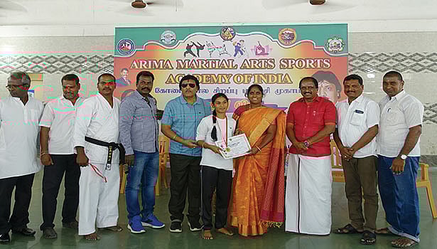 நிகழ்ச்சியில் சிலம்பு மாஸ்டர் ஜம்புலிங்கம், கராத்தே உதவி பயிற்சியாளர்கள் ஆர்.ராஜேஷ் ஸ்ரீஹரி, ஏ.ருத்ரா உள்பட ஏராளமானோர் கலந்து கொண்டனர்.