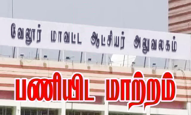 அதன்படி பீஞ்சமந்தையில் கிராம நிர்வாக அலுவலராக பணியாற்றி வந்த குணராஜ் அணைக்கட்டுக்கும், நந்திவர்மன் கீழ்கிருஷ்ணா புரத்தில் இருந்து வெட்டுவா னத்திற்கும், முனிரத்தினம் பொய்கையில் இருந்து பள்ளிகொண்டாவுக்கும், தமிழ்அரசு பூதூரில் இருந்து கீழாச்சூருக்கும், அபிலாஸ் சின்னபள்ளிக்குப்பத்தில் இருந்து ஒடுகத்தூர் மற்றும் பீஞ்சமந்தைக்கு கூடுதல் பொறுப்பு, கார்த்தி கீழாச்சூரிலிருந்து செதுவாலைக்கும், சிவமூர்த்தி ஒடுக்கத்தூரிலிருந்து கருங்காலிக்கும், தமிழழகன் அணைக்கட்டில் இருந்து திப்பசமுத்திரத்திற்கும், ஞானசுந்தரி பள்ளி கொண்டாவில் இருந்து பொய்கைக்கும், தங்கமுத்து வெட்டு வாணத்தில் இருந்து பூதூருக்கும், கிருஷ்ணவேணி கருங்காலியிலிருந்து கீழ்கிருஷ்ணாபுரத்திற்கும், குமரேசன் மேல்அர சம்பட்டில் இருந்து சின்ன பள்ளிக்குப்பத்திற்கும், அன்பு செதுவாலை யிலிருந்து மேல்அரசம்பட்டுக்கும் பணியிடமாற்றம் செய்து வேலூர் சப்-கலெக்டர் கவிதா உத்தரவிட்டு உள்ளார்.