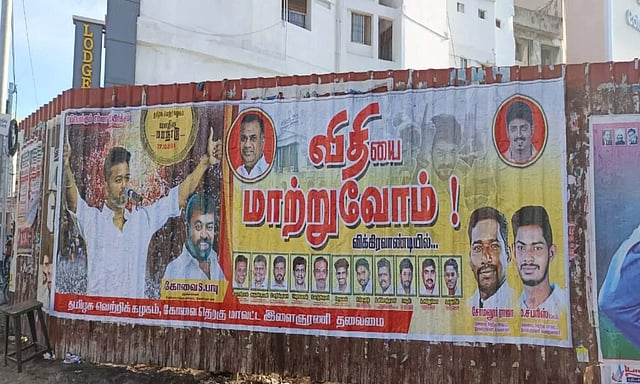 கோவை, திருச்சியில் தமிழக வெற்றிக்கழகத்தினர் ஒட்டியுள்ள இந்த சுவரொட்டிகள் பரபரப்பை ஏற்படுத்தி உள்ளன.