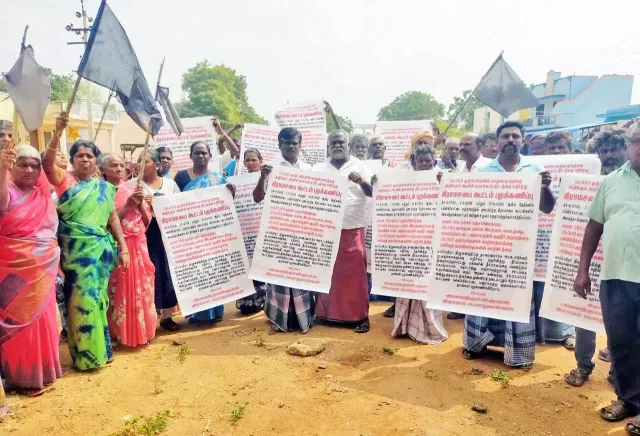 இந்நிலையில் அலவந்தான்குளம் கிராம மக்கள் இன்று கிராமசபை கூட்டத்தை புறக்கணித்தனர். அவர்கள் கிராமசபை கூட்டம் நடந்த பகுதி முன்பு கருப்புக்கொடி ஏந்தி போராட்டம் நடத்தினர். இது தொடர்பாக அவர்கள் கூறும்போது, எங்கள் பகுதியில் உள்ள மேய்ச்சல் நிலத்தை தனியார் நிறுவனங்களுக்காக சிப்காட் மூலம் அரசு கையகப்படுத்துவதாக தெரிகிறது. அதற்கு எதிர்ப்பு தெரிவிந்து நாங்கள் இந்த போராட்டத்தை நடத்தி வருகிறோம். எனவே அதனை கைவிட வேண்டும் என தெரிவித்தனர்