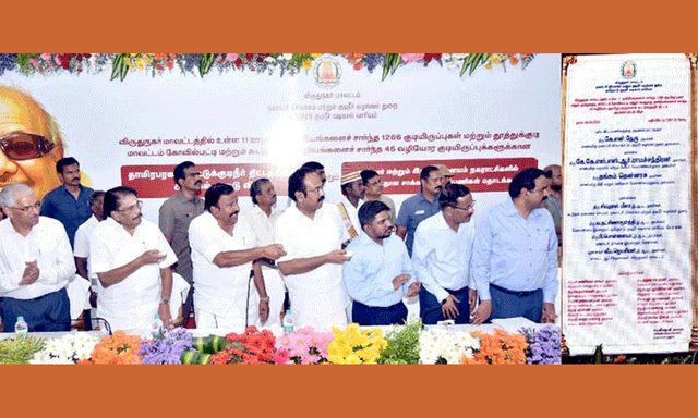 இதில் அமைச்சர்கள் கே.என்.நேரு, சாத்தூர் ராமச்சந்திரன், தங்கம் தென்னரசு ஆகியோர் கலந்து கொண்டு குடிநீர் திட்ட பணிகளுக்கு அடிக்கல் நாட்டினர். விருதுநகர் மாவட்டத்தில் உள்ள 11 ஒன்றியங்களை் சேர்ந்த 1,286 குடியிருப்புகள், தூத்துக்குடி மாவட்டம் கோவில்பட்டி மற்றும் கயத்தாறு ஒன்றியங்களைச் சேர்ந்த 45 வழியோர குடியிருப்புகளுக்கான ரூ.1387.73 கோடி மதிப்பிலான கூட்டுக்குடிநீர் திட்டத்திற்கு அடிக்கல் நாட்டினர்.