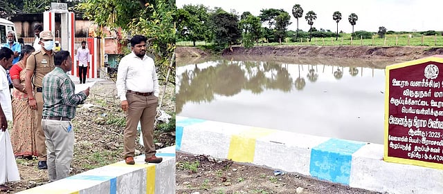 விருதுநகர் மாவட்டம், அருப்புக்கோட்டை ஊராட்சி ஒன்றியத்திற்கு உட்டப்பட்ட பெரிய வள்ளிக்குளம் கிராமத்தில் அனைத்து கிராம அண்ணா மறு மலர்ச்சி திட்டத்தின் கீழ் ரூ.6.09 லட்சம் மதிப்பில் 116-வது காலனியில் பேவர்பிளாக் அமைக்கும் பணிகளையும், ரூ.6.18 லட்சம் மதிப்பில் பள்ளி மாணவிகளுக்கான கழிவறை கட்டிடம் கட்டப்பட்டு வரும் பணி களையும், பெரிய வள்ளி குளம் கிராமத்தில் ரூ.8.47 லட்சம் மதிப்பில் ராமசாமி புரம் ஊரணியில் தடுப்புச் சுவர் அமைக்கும் பணியி னையும், ரூ.6.09 லட்சம் மதிப்பில் தூர்வாரும் பணிகளை கலெக்டர் ஜெயசீலன் பார்வையிட் டார்.
