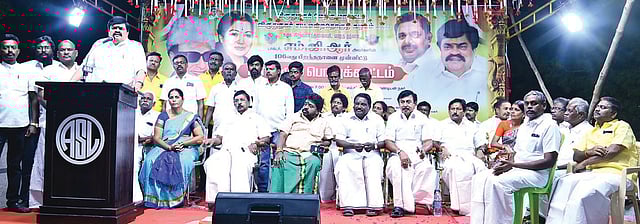 தற்போது சேதுசமுத்திர திட்டத்தை கையில் எடுத்துள்ளனர். ஒன்றுமே கிடைக்கவில்லை என்றால் ஏதாவது ஒன்றை கையில் எடுத்துக் கொள்கின்றனர். 2 ஏக்கர் நிலம் தருகின்றோம் என்று முன்னாள் முதல்வர் கருணாநிதி மக்களை ஏமாற்றி வாக்கு சேகரித்தார். கடைசியில் 2 ஏக்கர் நிலம் கொடுக்கவே இல்லை. வருகிற பாராளுமன்றத் தேர்தலுடன் சட்டமன்றத் தேர்தலும் வரவுள்ளது. மக்கள் அ.தி.மு.க.வுக்கு ஆதரவு அளிக்க வேண்டும்.