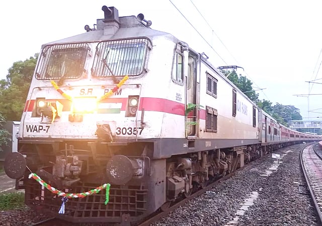 ரெயில் என்ஜினுக்கு மாலை, அலங்காரங்கள் செய்யப்பட்டு ஓட்டுநர், உதவி ஓட்டுநர் மற்றும் என்ஜின் ஆய்வாளர்களுக்கு சால்வை அணிவித்து கவுரவிக்கப்பட்டது.