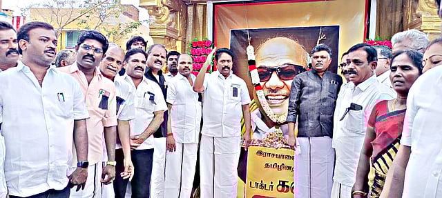 அதனை தொடர்ந்து ராஜபாளையம் அரசு மகப்பேறு மருத்துவமனை எதிரில் கருணாநிதி படத்திற்கும் தங்கபாண்டியன் எம்.எல்.ஏ. தி.மு.க நிர்வாகிகளுடன் இணைந்து மலர்தூவி மரியாதை செலுத்தினார்.