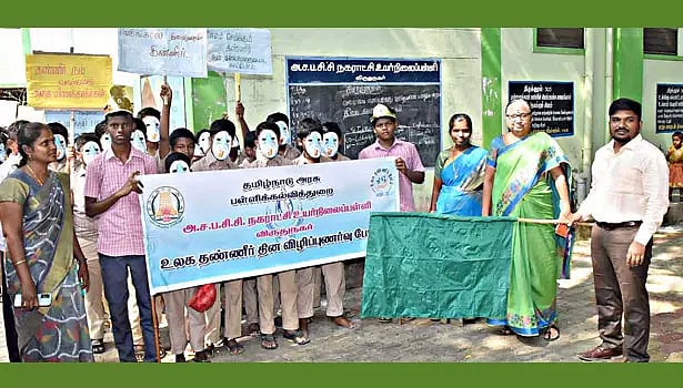 விருதுநகர் அ.ச.ப.சி.சி நகராட்சி உயர்நிலைப் பள்ளியில் உலக தண்ணீர் தினத்தை முன்னிட்டு விழிப்புணர்வு நிகழ்ச்சி கலெக்டர் ஜெயசீலன் தலைமையில் நடந்தது. இதில் கலந்து கொண்டு அவர் பேசியதாவது:-