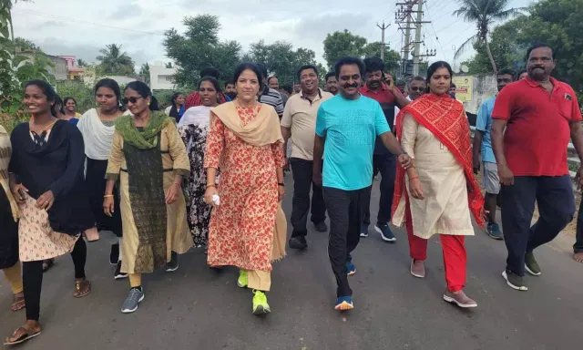 காஞ்சிபுரம், மாவட்ட பொது சுகாதார துறை சார்பில் நடப்போம் நலம் பெறுவோம் நிகழ்ச்சி இன்று காலை காஞ்சிபுரம் கலெக்டர் அலுவலகத்தில் தொடங்கி வைக்கப்பட்டது. காஞ்சிபுரம் கலெக்டர் கலைச்செல்வி மோகன் தலைமை தாங்கி நடப்போம் நலம் பெறுவோம் நடை பயிற்சி விழிப்புணர்வு முகாமை தொடங்கி வைத்து அவரும் நடந்து சென்றார்.