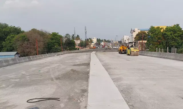 மேம்பால பணி ஆமை வேகத்தில் நடைபெற்று வருவதால் இன்னும் முடிவடையாமல் உள்ளது. 80 சதவீத பணிகள் முடிந்து உள்ள நிலையில் ரெயில்வே பகுதியில் மட்டும் சுமார் 50 மீட்டர் தூரத்திற்கு மேம்பாலபணி நடக்க வேண்டியுள்ளது. அந்த பணியும் முடிந்தால் மேம்பாலம் விரைவில் மக்கள் பயன்பாட்டுக்கு வந்து விடும் என்று அதிகாரிகள் தெரிவித்து உள்ளனர்.