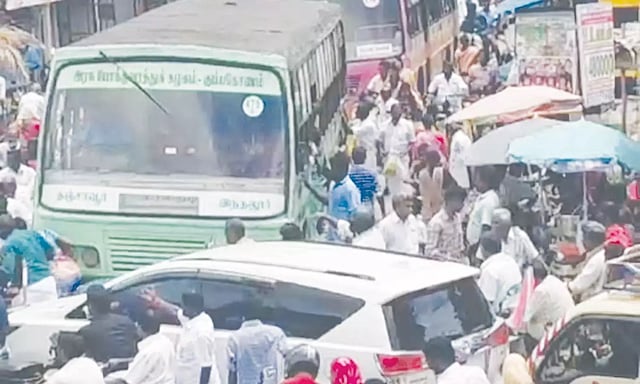 இதனால் பல நேரங்களில் பிரதான சாலையாக திகழும் பழமார்நேரி சாலை சந்திப்பில் இருந்து பேருந்து நிலையம் வரை வாகன நெரிசல் ஏற்படுகிறது. வாகனங்கள் நீண்ட வரிச யில் நின்றதால் நடந்து செல்வோரும் மிகுந்த சிரம த்திற்கு ஆளாகும் நிலை ஏற்படுகிறது.