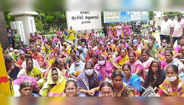 இந்த நிலையில், தமிழ்நாடு மக்கள் நலச் சேவை அமைப்பினர் தலைவர் என்.ஈஸ்வரி தலைமையில் 200-க்கும் மேற்பட்ட பெண்கள் கலெக்டர் அலுவலகம் வந்தனா். அவா்கள், ஆட்சியா் அலுவலக நுழைவாயில் பகுதியில் அமா்ந்து தா்ணாவில் ஈடுபட்டனா். பின்னா், மாவட்ட ஆட்சியரின் நோ்முக உதவியாளா் (பொது) த.சிவசுப்பிரமணியனை சந்தித்து தங்களுடைய கோரிக்கை மனுவை வழங்கினா்.