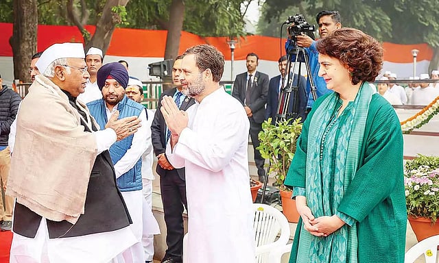 காங்கிரஸ் தலைவர் மல்லிகார்ஜுன கார்கே கட்சி கொடியை ஏற்றி வைத்தார். ராகுல்காந்தி, பிரியங்கா உள்ளிட்ட முக்கிய தலைவர்கள் இதில் பங்கேற்றனர்.