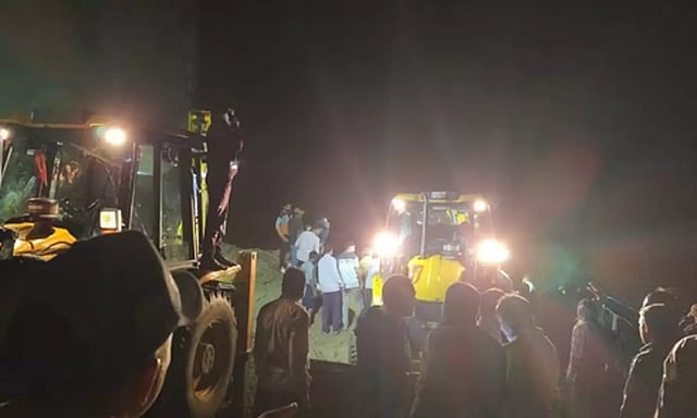 தகவலறிந்த மீட்புக் குழுவினர் விரைந்து சென்றனர். அவர்கள் நிலச்சரிவால் மண்ணுக்குள் சிக்கிய பஸ்சில் இருந்தவர்களை மீட்க முயற்சித்தனர்.