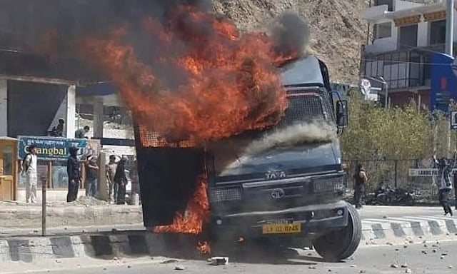 இதற்கிடையே, லடாக்கில்முழு அடைப்பு போராட்டத்துக்கு அழைப்பு விடுக்கப்பட்டது. இன்று காலை முழு அடைப்பு போராட்டம் நடந்தது. அப்போது போராட்டக்காரர்களுக்கும், போலீசாருக்கும் இடையே தள்ளுமுள்ளு ஏற்பட்டது. இதனால் ஆத்திரமடைந்த போராட்டக்காரர்கள் வன்முறையில் ஈடுபட்டனர். போலீசாரின் வாகனங்களுக்கு தீவைத்தனர்.