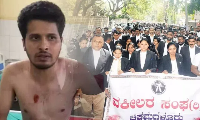 கர்நாடக மாநிலம் சிக்மகளூர் பகுதியை சேர்ந்தவர் வக்கீல் பிரீதம். சம்பவத்தன்று இவர் ஹெல்மெட் அணியாமல் வாகனத்தில் சென்றதாக கூறப்படுகிறது. இதையடுத்து சிக்மகளூர் நகர போலீசார் அவரை பிடித்து போலீஸ் நிலையத்திற்கு அழைத்து சென்றனர். அப்போது வக்கீல் பிரீதமை போலீசார் தாக்கியதாக கூறப்படுகிறது. இதுபற்றி தெரியவந்ததும் போலீஸ் நிலையம் முன்பு ஏராளமான வக்கீல்கள் திரண்டு போராட்டம் நடத்தினர்.