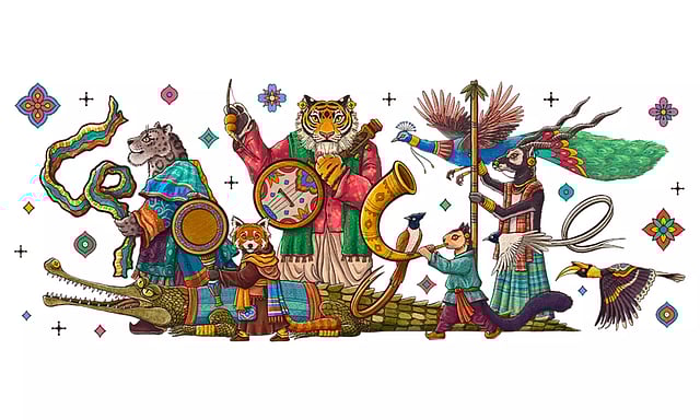 அதில், லடாக்கி உடையில் ஒரு பனிச்சிறுத்தை, பாரம்பரிய இசைக்கருவியைுடன் வேட்டி-குர்தா அணிந்த 'புலி' மற்றும் இந்தியாவின் பல்வேறு பகுதிகளையும் அதன் பன்முகத்தன்மையையும் வெளிப்படுத்தும் சில விலங்குகள் மற்றும் பறவைகள் 76வது குடியரசு தினத்தைக் குறிக்கும் வகையில் டூடுலாக இடம்பெற்றுள்ளன.
