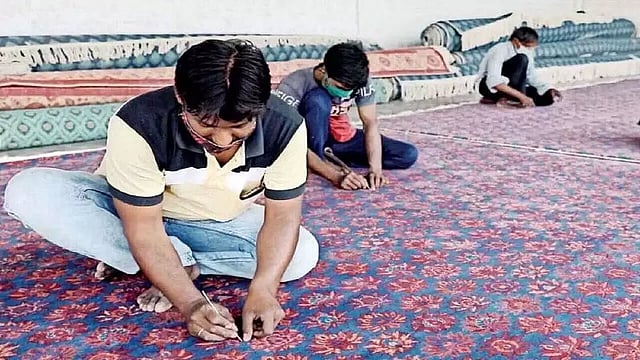 நாங்கள் திட்டத்தை 2020ம் ஆண்டில் கொரோனா தொற்றுநோய்க்கு மத்தியில் தொடங்கினோம். செப்டம்பர் 2021ம் ஆண்டில் தொடங்கப்பட்ட நெசவு செயல்முறை மே, 2022ம் ஆண்டில் முடிந்தது. மேலும் இரு அவைகளிலும் நிறுவ நவம்பர் 2022ல் தொடங்கியது. ஒவ்வொரு கம்பளத்தையும் அதிக அடர்த்தியுடன் ஒரு சதுர அங்குலத்திற்கு 120 முடிச்சுகள் உருவாக்குவதற்கு ஏறக்குறைய ஏழு மாதங்கள் எடுத்தது.