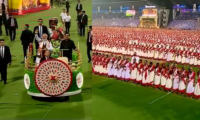 இந்நிலையில் இந்த விழாவில் பிரதமர் மோடி பங்கேற்றுள்ளார். இதை முன்னிட்டு கவுகாத்தியில் நடந்த ரோட் ஷோவில் பிரதமர் நரேந்திர மோடிக்கு பாஜக தொண்டர்கள், பொது மக்கள் உற்சாக வரவேற்பு அளித்தனர்.