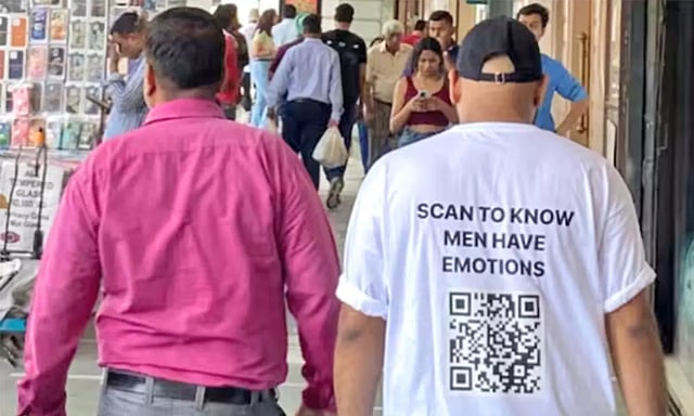டெல்லியை சேர்ந்த பூஜா சன்வால் என்ற பெண் கன்னோட் ப்ளேஸ் பகுதியில் ரோகித் சலூஜா என்ற வாலிபர் அணிந்திருந்த 'கியூ-ஆர்' டி-ஷர்ட்டை பார்த்தார்.