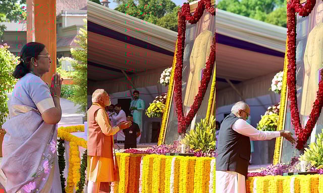 குஜராத்திற்கு பயணம் மேற்கொண்டுள்ள ஜனாதிபதி திரௌபதி முர்மு, அங்கு அம்பேத்கர் படத்திற்கு மாலை மலர்தூவி மரியாதை செலுத்தினார்.