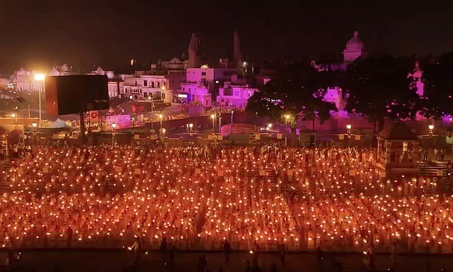 சரயு ஆற்றின் கரையில் 26,17,215 லட்சம் அகல் விளக்குகள் ஏற்றி உலக சாதனை படைக்கப்பட்டது.