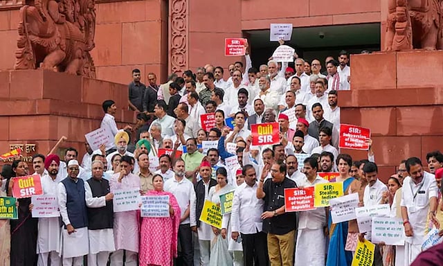 இந்நிலையில் பீகார் சட்டமன்றத் தேர்தலுக்கு முன்னதாக இந்தியத் தேர்தல் ஆணையத்தால் மேற்கொள்ளும் சிறப்பு தீவிர திருத்த (SIR) நடவடிக்கைக்கு எதிராக இந்தியா கூட்டணி எம்.பி.க்கள் நாடாளுமன்றத்திற்கு வெளியே போராட்டம் நடத்தினர்.