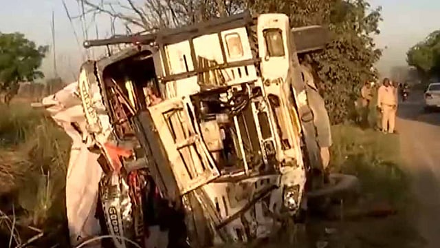 உத்தர பிரதேச மாநிலம் ஹாபுரில் பேருந்தும், லாரியும் நேருக்குநேர் மோதிய விபத்தில் 6 பேரி பரிதாபமாக உயிரிழந்தனர்.