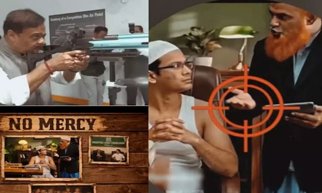 "Point Blank Shot" என்று தலைப்பிடப்பட்ட அந்த வீடியோவில், முதல்வர் பிஸ்வா கையில் ரைபிள் துப்பாக்கியை எடுத்து குறிபார்க்கிறார், அடுத்த காட்சியில் ஏஐ மூலம் உருவாக்கப்பட்ட குல்லாய், தாடி உள்ளிட்ட இஸ்லாமிய அடையாளம் கொண்ட இருவரின் மீது பிஸ்வாவின் துப்பாக்கி சுடுவதற்கு குறி வைக்கப்பட்டது பொன்று சித்தரிக்கப்பட்டுள்ளது.
