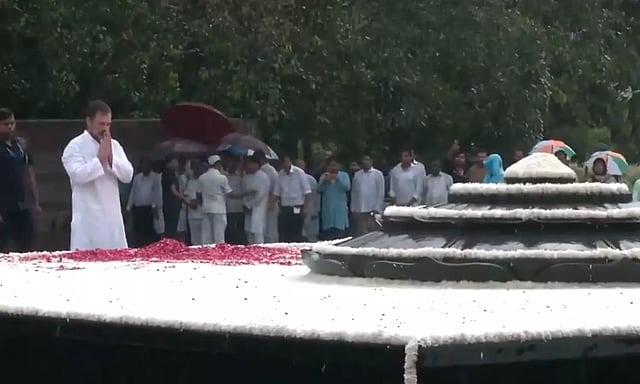 #WATCH | Congress leader Rahul Gandhi pays floral tribute to former Prime Minister Rajiv Gandhi on his birth anniversary, at Veer Bhumi pic.twitter.com/wKpDPotBen
